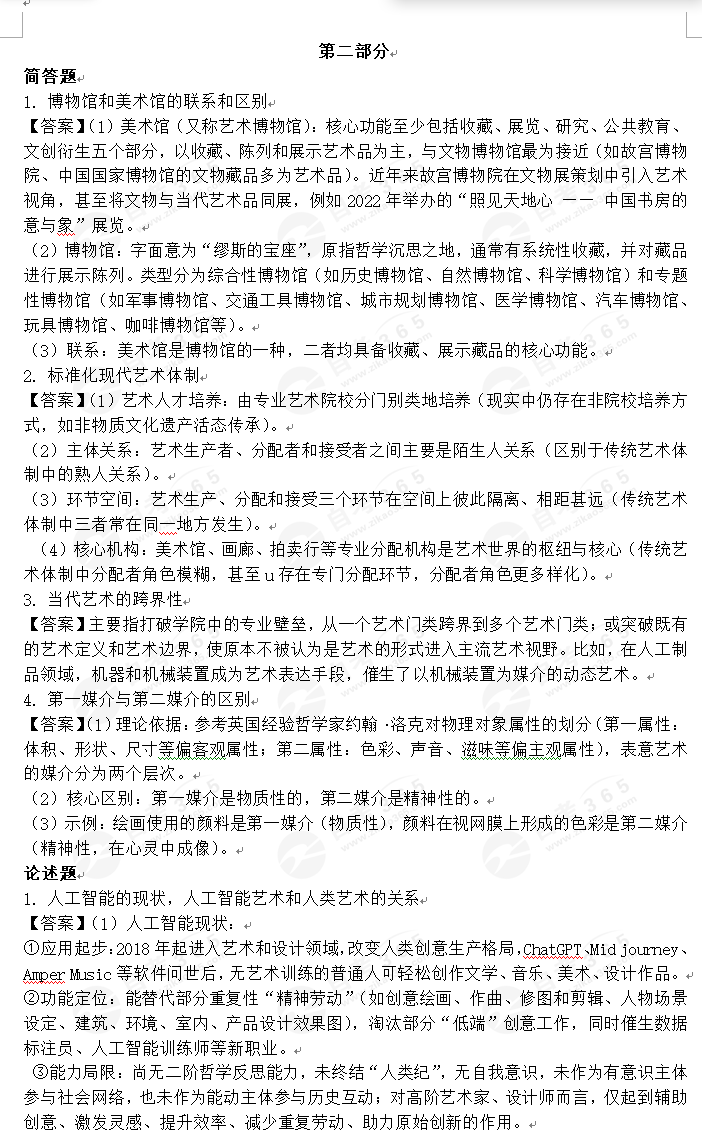 2025年10月自考艺术概论部分试题及答案(考友回忆版)